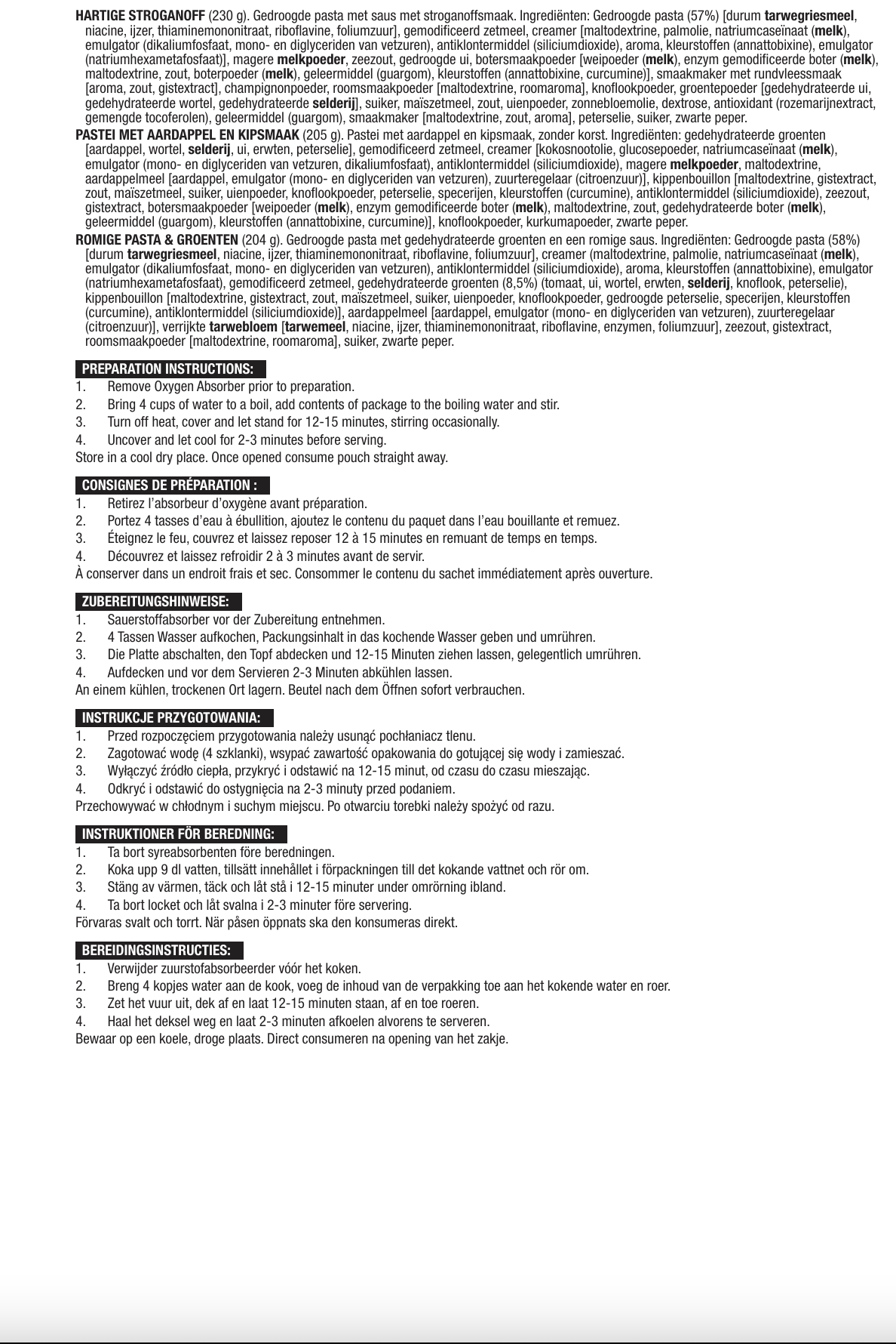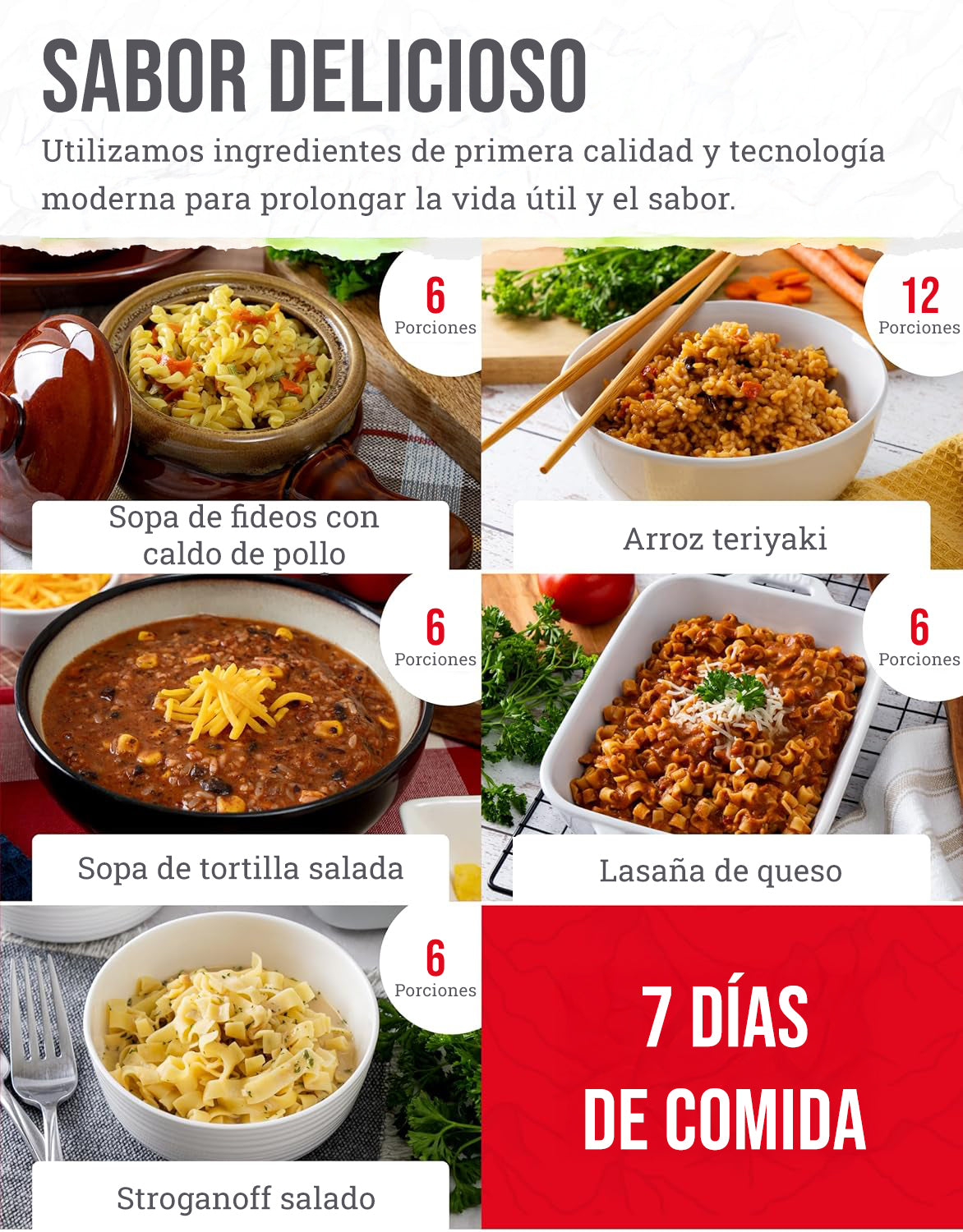 - SOLO AGREGUE AGUA: Cada plato principal es fácil de preparar en cualquier circunstancia de emergencia usando solo agua.